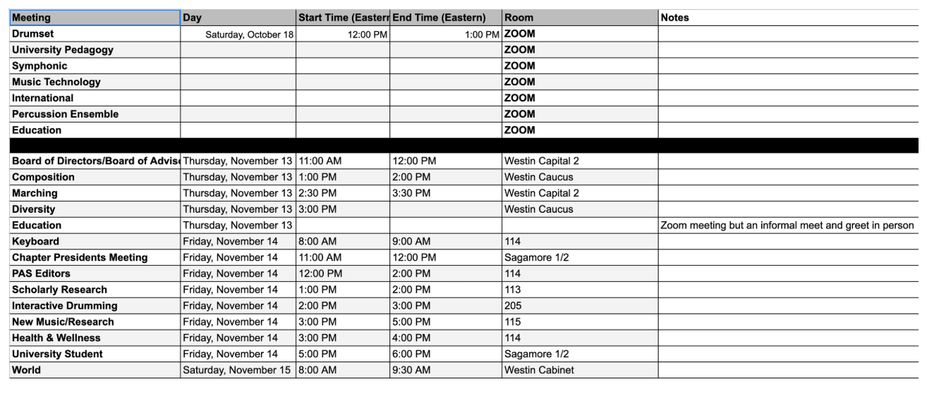 The Guidebook App for PASIC 50 is out now and you can create your own personalized schedule, this is where you will find the many friends of the show who will be participating. Go to: https://pas.org/pasic/app/. You can also check out when the various committee meetings are happening and when if you need to attend or are interested in becoming a member on one (see image below).