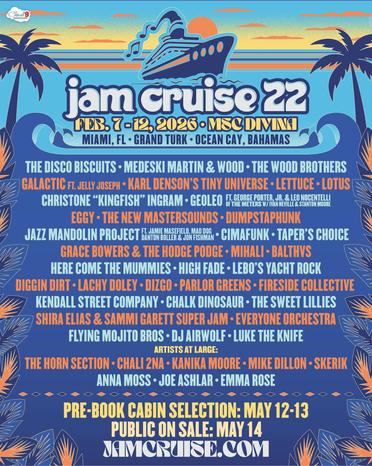 The Jam Cruise 2026 lineup has been announced. It will take place Feb 7th-12th 2026 going from Miami to the Bahamas and back.