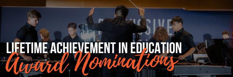 If you would like to submit a Lifetime Achievement Award in Education for the Percussive Arts Society, please CLICK HERE. The nomination window will be May 1, 2025 – July 31, 2025.