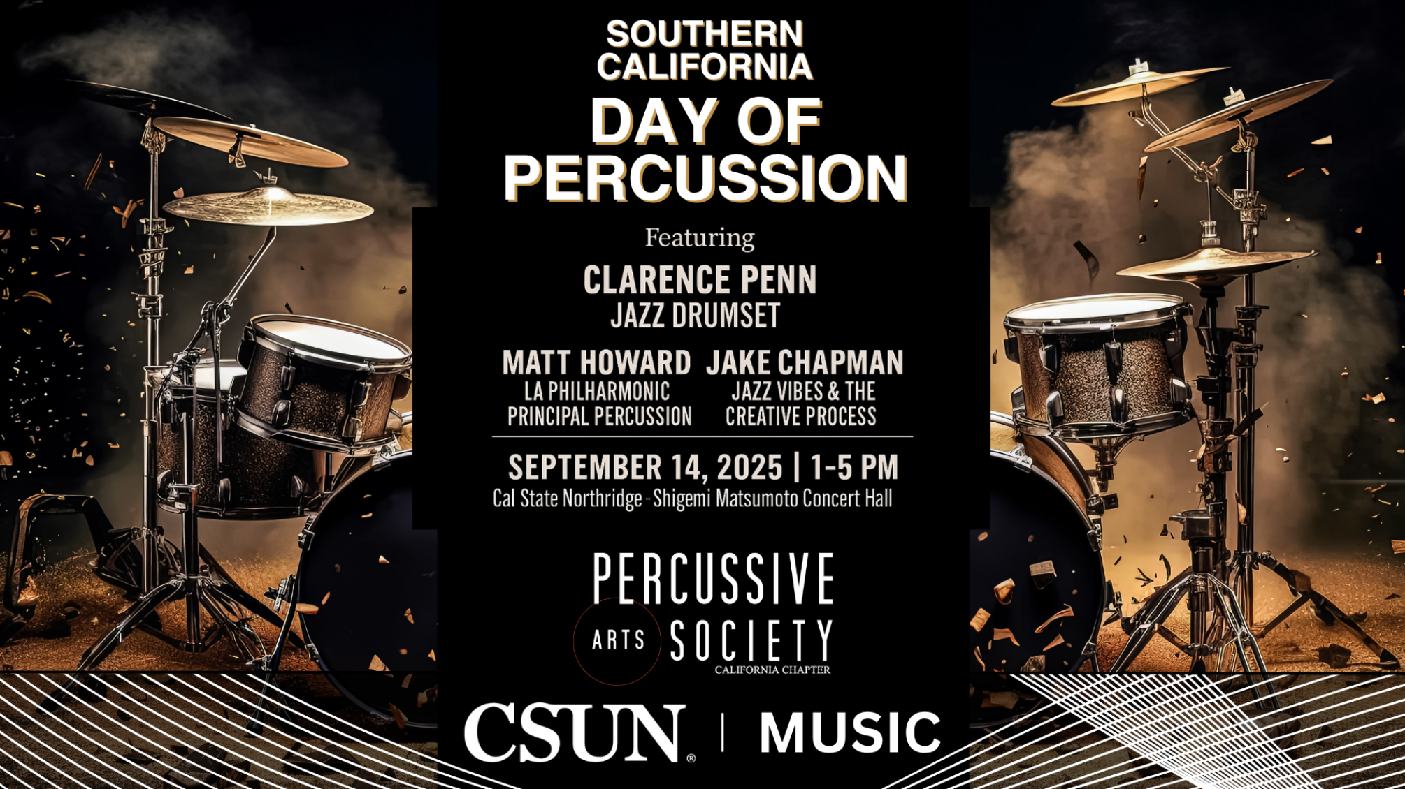 The SoCal Day of Percussion is happening Sunday September 14th at California State University Northridge from 1:00 pm to 5:00 pm. FREE ADMISSION!