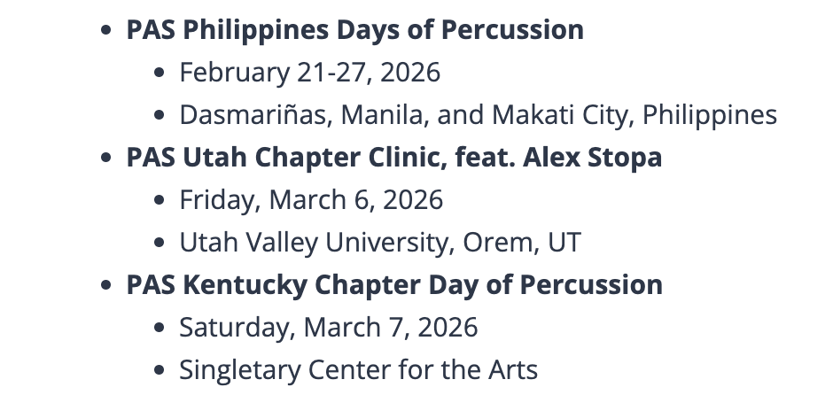 There are more upcoming days of percussion for the rest of February (and into March).