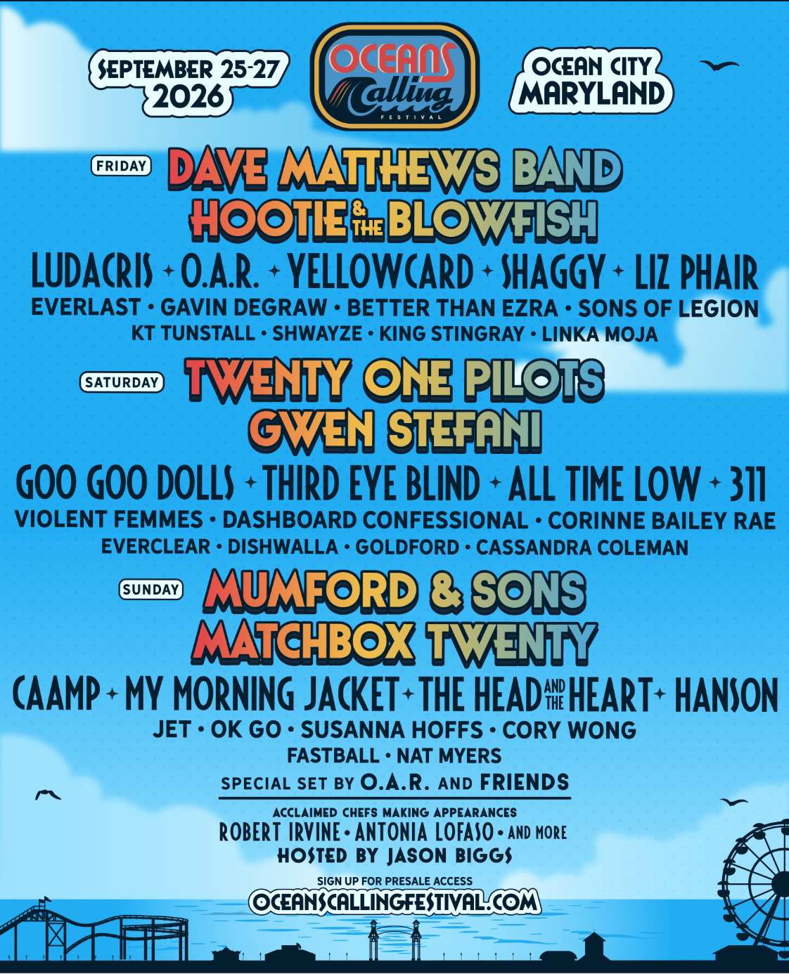 The Ocean’s Calling Festival is happening from Sept 25th-27th in Ocean City, MD.