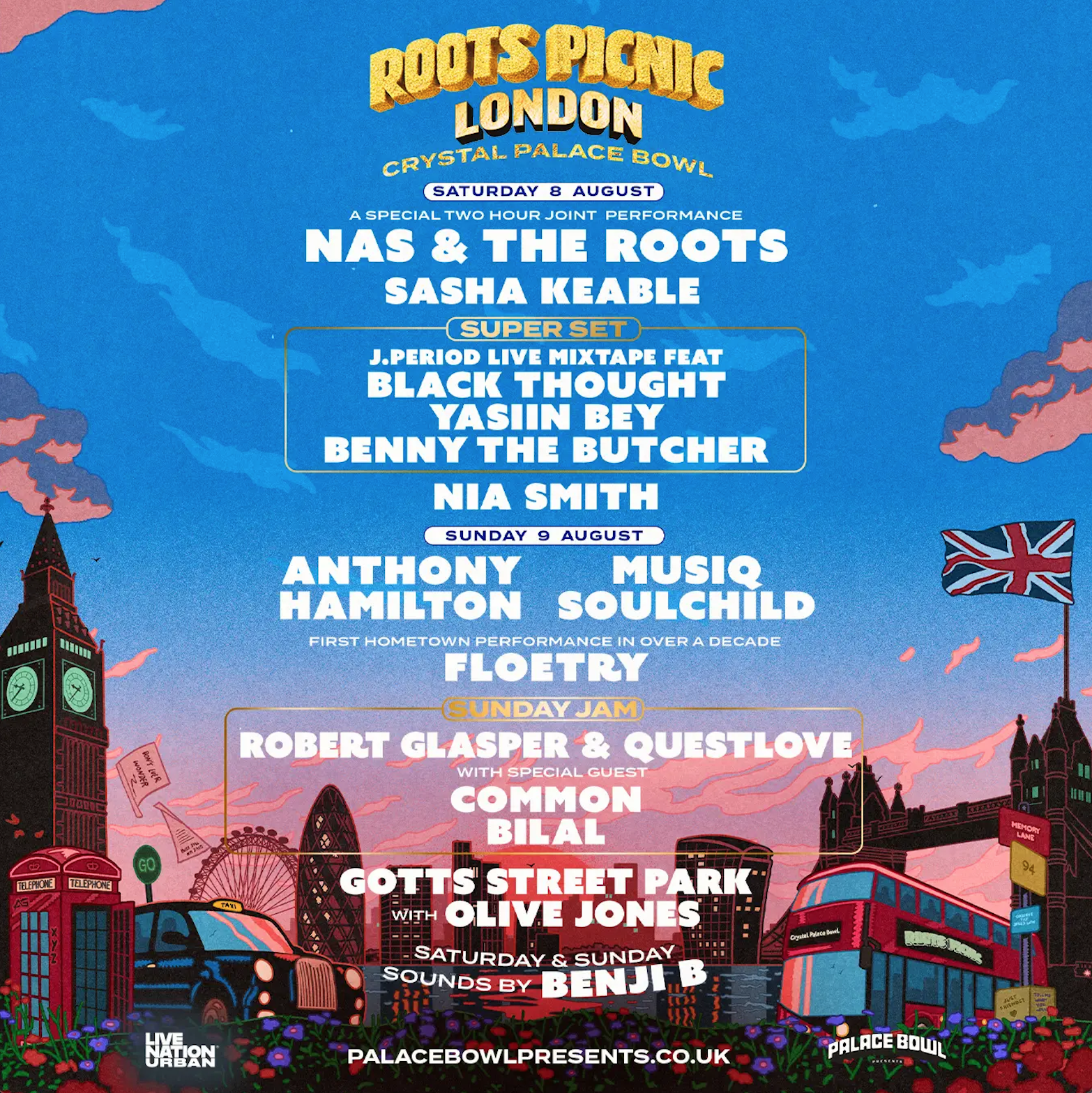 The Roots Picnic London version is happening at Crystal Palace Bowl August 8th and 9th.
